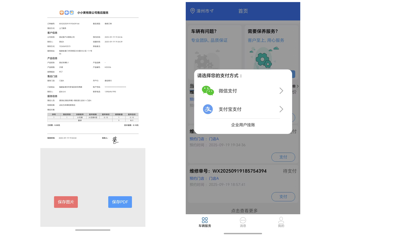 驗收通過后,用戶可選擇掛賬或是直接在線支付訂單。